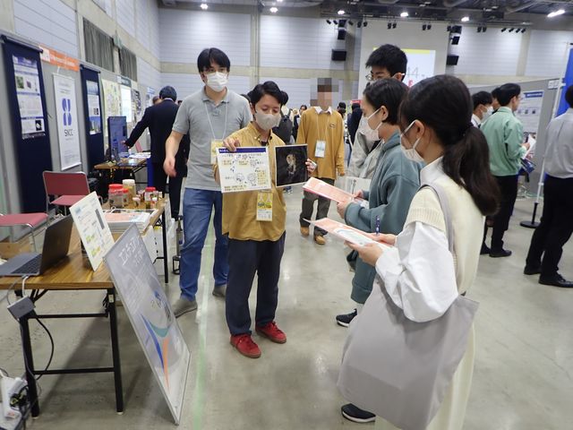 島根県内の高等教育機関・官公庁関連団体・一般企業などの出展が約140ブース集まり、主に高校生以上の若者を対象にした交流が行われました。当センターからは瀬戸准教授(環境変動解析部門)、金助教(流動解析部門)、川井田助教(水圏生態研究部門)がプレゼンターとして参加しました。